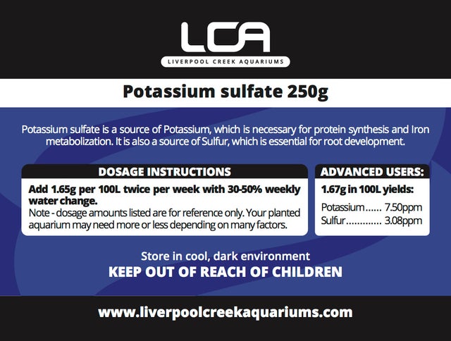 Potassium Sulfate (K2SO4) is a source of Potassium (K) necessary for protein synthesis and Iron (Fe) metabolization.